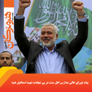 شورای عالی مدارس اهل سنت و جماعت جنوب ضمن عرض تسلیت به عموم آزادگان به ویژه مردم دردمند فلسطین و مجاهدان حماس، هر گونه تعرض به ساحت امنیت و حقوق بشر را محکوم می نماید.