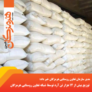 مدیر سازمان تعاون روستایی استان هرمزگان، گفت: از ابتدای سال جاری تا کنون ۱۲ هزار و ۶۰۰ تن آرد توسط شبکه تعاون روستایی استان هرمزگان توزیع شده است.
