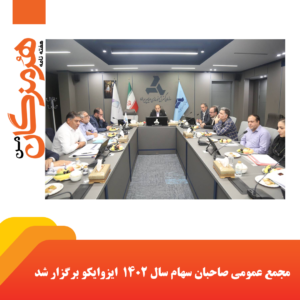 جلسه مجمع عمومی صاحبان سهام سال ۱۴۰۲ شرکت مجتمع کشتی سازی و صنایع فراساحل ایران (ایزوایکو) با حضور کلیه ی صاحبان سهام یا نمایندگان قانونی آن ها از جمله :سهامدار اصلی، سازمان گسترش و نوسازی صنایع ایران با حضور دکتر بابک احمدی معاون محترم وزیر و رئیس هیئت عامل و سایر اعضاء مهندس مهدی اعتصام رئیس هیئت مدیره ایزوایکو، دکتر سلمان ضربی نائب رئیس هیئت مدیره و مدیر عامل ایزوایکو و سایر اعضاء هیئت مدیره و ناظرین و بازرس قانونی در محل سالن جلسات سازمان گسترش و نوسازی صنایع ایران در موعد قانونی برگزار گردید.