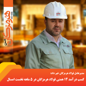 مدیرعامل شرکت فولاد هرمزگان از کسب درآمد ۱۴ هزار میلیارد تومانی ”۱۴ همتی” هرمز و رشد ۷ درصدی درآمد حاصل از صادرات طی ۵ ماهه نخست امسال خبر داد.
