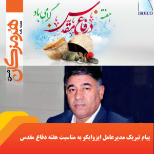 اینجانب به نمایندگی از خانواده بزرگ صنعت دریایی کشور، این ایام پرافتخار را به تمامی همکاران، خانوادههای معظم شهدا و ایثارگران، رزمندگان اسلام و مردم شریف ایران تبریک میگویم. با الهام از همان روحیه ایثار و مقاومت، ایزوایکو متعهد است تا در راستای خودکفایی و توسعه صنعتی کشور بیش از پیش تلاش کند و نقش موثری در پیشرفت ایران عزیز ایفا نماید.