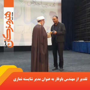 در نهمین اجلاس نماز استان هرمزگان از مهندس باوقار زعیمی به عنوان مذیر شایسته نمازی تقدیر شد.