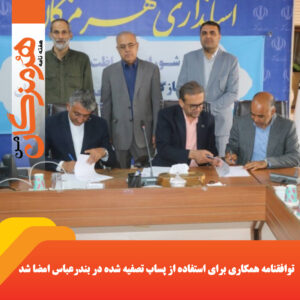 به گزارش هرمزگان من به نقل از روابط عمومی شرک آب منطقه ای هرمزگان، صبح امروز با حضور محمد آشوری استاندار هرمزگان، جمشید عیدانی مدیر عامل شرکت آب منطقه ای هرمزگان، شهرداری و آب و فاضلاب، توافقنامه، همکاری استفاده از پساب خروجی تصفیه خانه فاضلاب بندرعباس در پروژههای سیما و منظر شهری و فضای سبز، شهرداری بندرعباس با شرکت تامین و توسعه زیرساخت خلیج فارس (PGIDSCO) و شرکت های آب تابع وزارت نیرو در استان هرمزگان،در سالن جلسات استانداری هرمزگان مبادله شد.