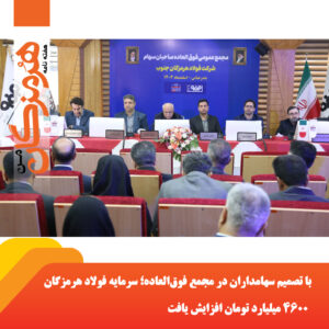 مجمع عمومی فوقالعاده سهامداران شرکت فولاد هرمزگان با حضور اکثریت سهامداران برگزار شد و سرمایه این شرکت با افزایش ۴۶۰۰ میلیارد تومانی به ۱۳ هزار میلیارد تومان رسید.
