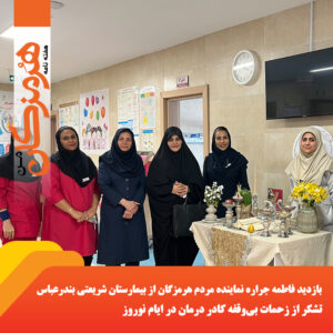 فاطمه جراره نماینده مردم هرمزگان در مجلس شورای اسلامی، روز پنجشنبه با حضور در بیمارستان شریعتی بندرعباس از نزدیک از بخشهای مختلف این مرکز درمانی بازدید کر