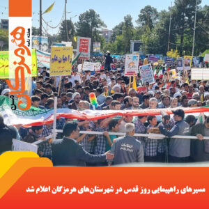رئیس شورای هماهنگی تبلیغات اسلامی هرمزگان گفت: مسیر راهپیمایی روز قدس در شهرستان رودان نیز ساعت ۱۰ و چهل و پنج دقیقه صبح از میدان امام خمینی (ره) به سمت مسجد میرکمال الدین اعلام شده است.