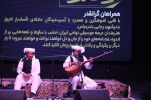 هرمزگان من- امید رحمانی سرپرست گروه موسیقی ابوالوفا بوزجانی از خراسان رضوی در دومین روز از جشنواره موسیقی نواحی با ابراز تأسف از حادثه انفجار در بندر شهید رجایی به هموطنانمان تسلیت گفت و برای بهبودی مصدومان این حادثه دعا کرد.