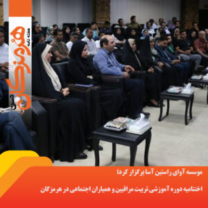 هرمزگان من- مراسم اختتامیه دوره آموزشی تربیت مراقبین و همیاران اجتماعی، روز گذشته، ۲۱ خرداد ماه، با حضور جمعی از مسئولین استانی و شهری برگزار شد.