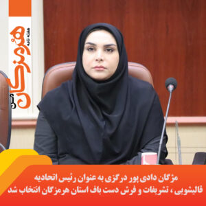 صبح امروز، انتخابات دوره جدید اتحادیه قالیشویی ، تشریفات و فرش دست باف استان هرمزگان برگزار شد و مژگان دادی پور درگزی با رای اعضای اتحادیه، به عنوان رئیس این اتحادیه انتخاب گردید.