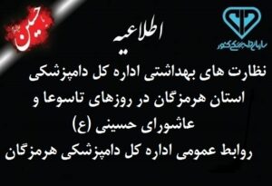 ضمن تسلیت ایام عزاداری سرور و سالار شهیدان ، حضرت اباعبدا…الحسین(ع) و یاران با وفایشان، به اطلاع همشهریان و مردم عزیز می رسانیم به منظور حفظ سلامت هموطنان گرامی و تأمین بهداشت عمومی جامعه، اداره کل دامپزشکی استان هرمزگان در سطح استان، آماده بازرسی بهداشتی و شرعی دام های قربانی شما، در روز تاسوعا و عاشورای حسینی(ع) می باشند.