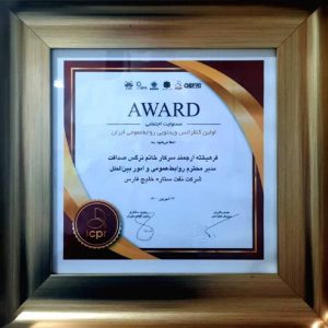 در بخش رقابتی طبق رأی هیئتداوران “نرگس صداقت” مدیر روابط عمومی و امور بینالملل شرکت نفت ستاره خلیجفارس تندیس و لوح سپاس ملی تعالی ارتباطات بحران را بهپاس عملکرد شایسته در حوزه مسئولیتهای اجتماعی در دوران شیوع ویروس کرونا دریافت کرد.