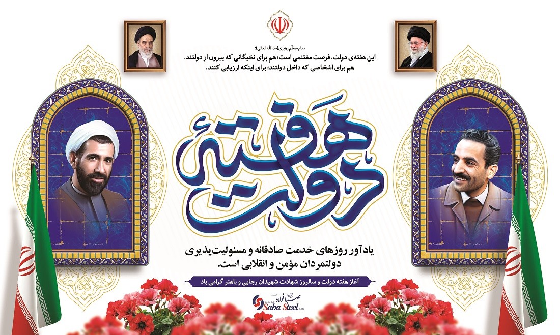 اینجانب به نمایندگی از خانواده صبا فولاد خلیج فارس، فرارسیدن هفته دولت را به دولتمردان خدوم جمهوری اسلامی ایران و ملت بزرگوارمان تبریک عرض مینمایم و امیدوارم با تکیه بر روحیه «۱۲ ماه تلاش» و الهام از «۱۲ روز دفاع»، همگی دست در دست هم آیندهای روشنتر برای ایران عزیز رقم بزنیم.