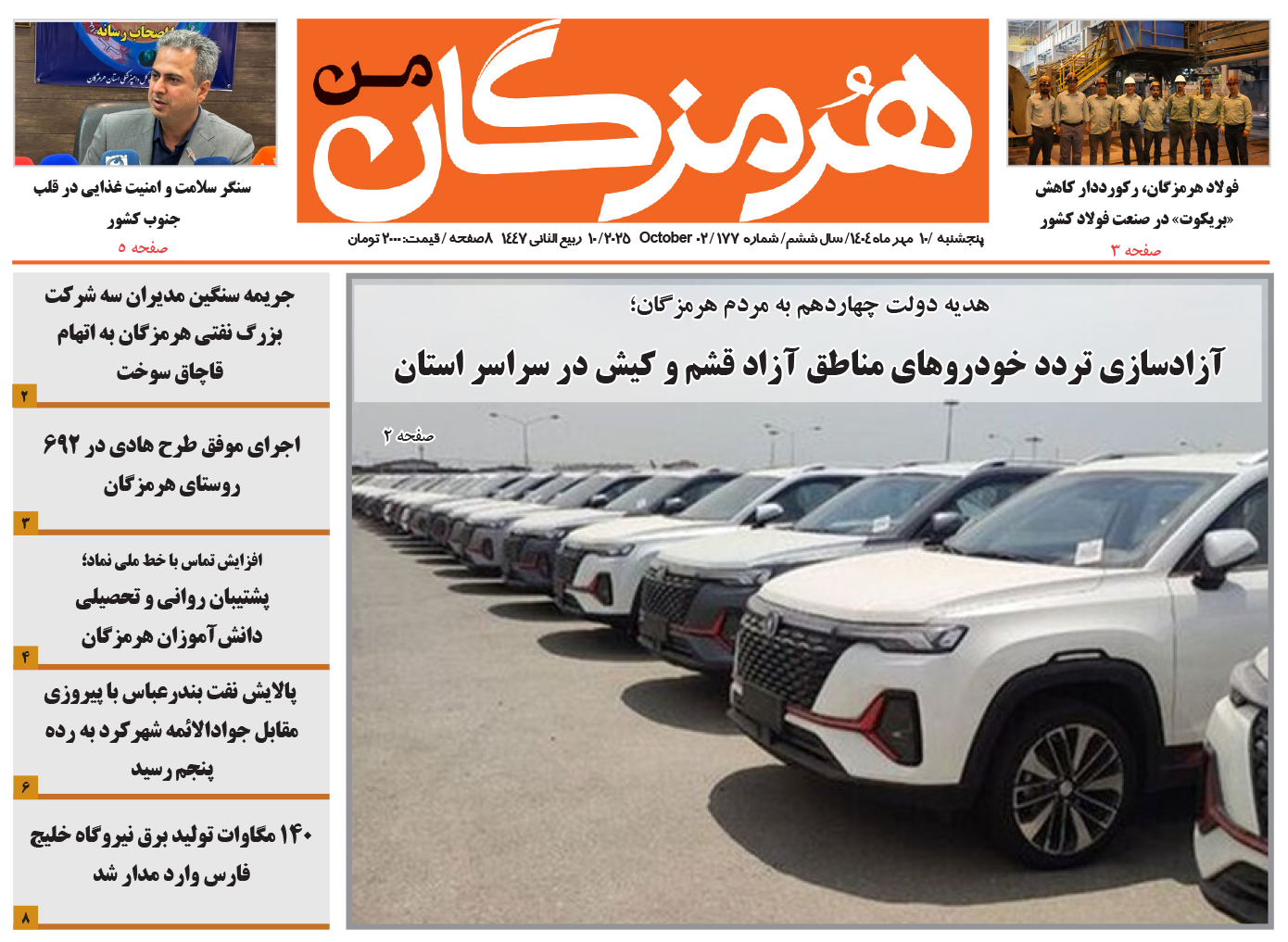 هفته نامه هرمزگان من| دهم مهر ماه۱۴۰۴| شماره ۱۷۷