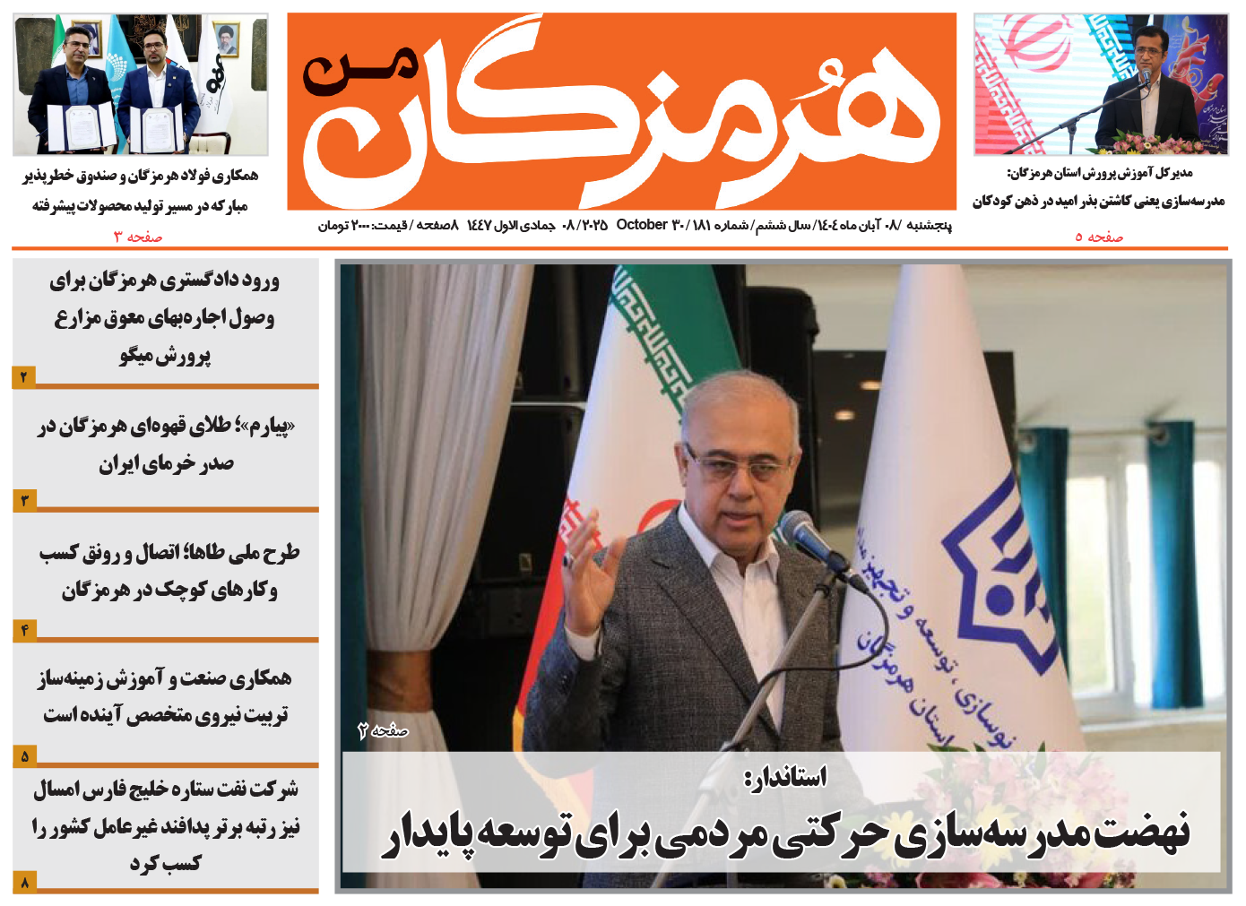 هفته نامه هرمزگان من| هشتم آبان ماه۱۴۰۴| شماره ۱۸۱ آرشیو هفته نامه کد خبر: 16398زمان مطالعه 1 دقیقه۰۴/۰۸/۰۸ 0 نظر چاپ خبردانلود pdfبندرعباسهرمزگان منمطالب دیگر آرشیو هفته نامههفته نامه هرمزگان من| یکم آبان ماه۱۴۰۴| شماره ۱۸۰ آرشیو هفته نامههفته نامه هرمزگان من| بیست و چهارم مهر ماه۱۴۰۴| شماره ۱۷۹ آرشیو هفته نامههفته نامه هرمزگان من| دهم مهر ماه۱۴۰۴| شماره ۱۷۷ آرشیو هفته نامههفته نامه هرمزگان من| سوم مهر ماه۱۴۰۴| شماره ۱۷۶ آرشیو هفته نامههفته نامه هرمزگان من| بیست و هفت شهریور ماه۱۴۰۴| شماره ۱۷۵ آرشیو هفته نامههفته نامه هرمزگان من| بیست شهریور ماه۱۴۰۴| شماره ۱۷۴ نظراتدیدگاهتان را بنویسید لغو پاسخنشانی ایمیل شما منتشر نخواهد شد. بخشهای موردنیاز علامتگذاری شدهاند *نام * ایمیل * وب سایت ذخیره نام، ایمیل و وبسایت من در مرورگر برای زمانی که دوباره دیدگاهی مینویسم.دیدگاه * Δ