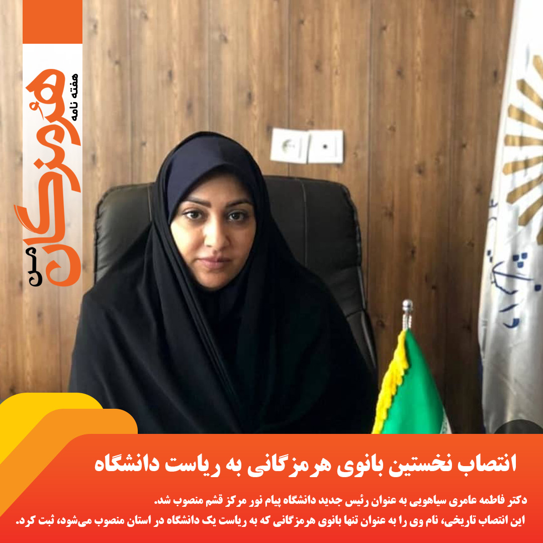هرمزگان من- دکتر فاطمه عامری سیاهویی به عنوان رئیس جدید دانشگاه پیام نور مرکز قشم منصوب شد. این انتصاب تاریخی، نام وی را به عنوان تنها بانوی هرمزگانی که به ریاست یک دانشگاه در استان منصوب میشود، ثبت کرد.