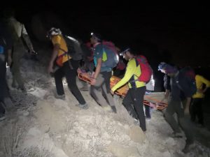 توسط عوامل امدادی هلال احمر از ارتفاعات به منطقه امن منتقل شد و پس از اقدامات درمانی اولیه، توسط عوامل اورژانس به مرکز درمانی منتقل شد.