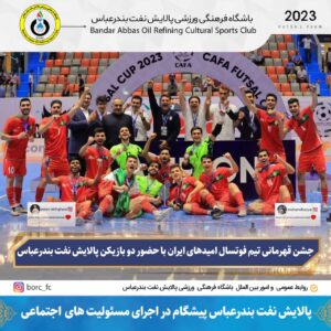 جشن قهرمانی تیم فوتسال امیدهای ایران با حضور دو بازیکن پالایش نفت بندرعباس برگزار شد.