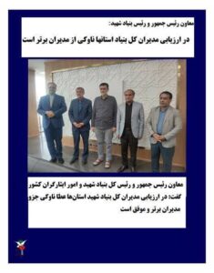 معاون رئیس جمهور و رئیس کل بنیاد شهید و امور ایثارگران کشور گفت: در ارزیابی مدیران کل بنیاد شهید استانها عطا ناوکی جزو مدیران برتر و موفق است.
