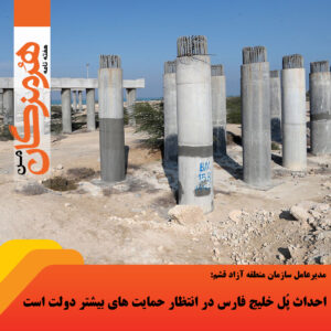 وی اعلام کرد: برای احداث این پل کارگاه تجهیز شد و بعد از سال ها آمدند و آنچه را که قرارداد بود و عملیاتی نشده بود و به دلیل کم کاری ۱۲ – ۱۳ سال از ناحیه همه ادامه پیدا کرده بود را در قالب یک صورتجلسه تنظیم کردند و گفتند که بخش دریایی را از خشکی جدا می کنیم و این بخش برود برای خود اعتبار تامین مالی خارجی (فاینانس) کند و حداقل بخش خشکی شروع شود.