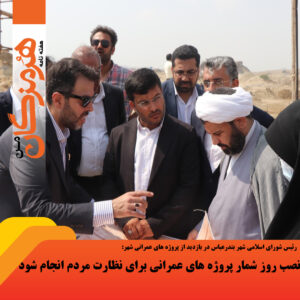 رئیس شورای اسلامی شهر بندرعباس با اشاره به پیگیری مستمر اعضای شورای شهر از پیشرفت فیزیکی پروژه های عمرانی شهر، گفت: بر اساس دغدغه اعضای شورای شهر در خصوص تسریع و انجام به موقع پروژه های عمرانی شهر، برنامه منظم و مستمر بازدید از این پروژه ها در دستور کار است که بر اساس این برنامه زمان بندی ، روند اجرا و پیشرفت فیزیکی پروژه ها بررسی می شود.