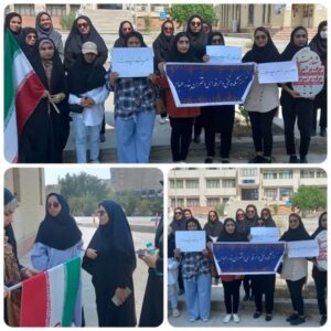 تجمع اعتراضی کارکنان،اساتید و دانشجویان دانشگاه فنی و حرفه ای هرمزگان در محکومیت جنایات رژیم صهیونیستی برگزار شد.