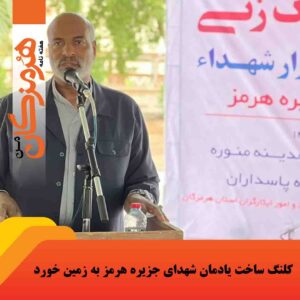 آیین کلنگ زنی ساخت یادمان شهدای جزیره هرمز امروز توسط سردار سرتیپ پاسدار «محمد مارانی» فرمانده قرارگاه منطقه ای مدینه منوره نیروی زمینی سپاه و با حضور خانواده شهدای جزیره هرمز و مسئولین استانی به زمین زده شد.