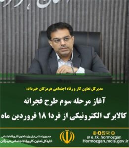 مدیر کل تعاون کار و رفاه اجتماعی استان هرمزگان گفت: مرحله سوم طرح کالابرگ الکترونیکی(فجرانه) در راستای حمایت مضاعف از سبد غذایی خانوارهای دهک اول تا هفتم درآمدی از ۱۸ فروردین آغاز میشود.