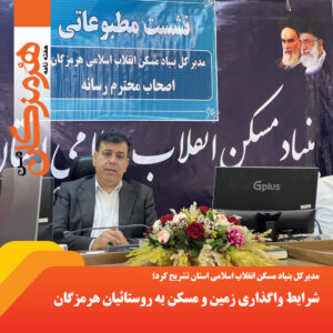 مدیرکل بنیاد مسکن انقلاب اسلامی هرمزگان یادآور شد: سال گذشته با حضور رئیس جمهوربالغ بر ۱۶۰ واحد مسکونی در فاز اول شهرک پیامبراعظم در بخش «نهضت ملی مسکن» به مردم تحویل دادیم.