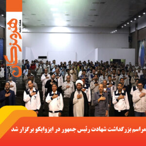 مراسم بزرگداشت شهادت آیت الله سید ابراهیم رییسی و هیأت همراه ایشان با حضور آیت الله سید محمدعلی معصومی استاد اخلاق حوزههای علمیه ، دکتر سلمان ضربی مدیرعامل و نایب رئیس هیئت مدیره ایزوایکو، معاونین و مدیران ارشد مجتمع، کربلایی جعفری مداح اهل بین، قاری مطرح استان آقای کهوری و حضور پرشور مدیران و کارکنان ایزوایکو در سالن آمفی تئاتر این مجتمع عظیم صنعتی برگزار شد.