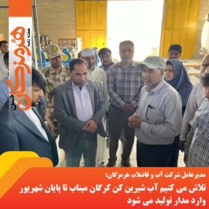 مدیرعامل شرکت آب و فاضلاب هرمزگان گفت: تلاش می کنیم آب شیرین کن کرگان تا پایان شهریور وارد مدار بهره برداری شود.