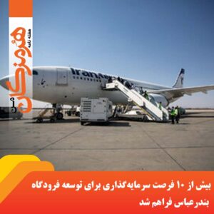 مدیرکل فرودگاههای هرمزگان از فراهمسازی بیش از ۱۰ فرصت سرمایهگذاری توسط بخش خصوصی برای توسعه فرودگاه بینالمللی بندرعباس خبر داد و گفت: ایجاد ترمینال لجستیک، احداث مجتمع تجاری، تفریحی و اقامتی، احداث پمپ بنزین و مجتمع خدمات رفاهی و احداث باشگاه ورزشهای هوایی از جمله فرصتهای سرمایهگذاری در این فرودگاه است.