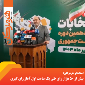 استاندار هرمزگان با اشاره به استقبال پرشور مردم از دومین مرحله چهاردهمین دوره انتخابات ریاست جمهوری، گفت: طی یک ساعت اول آغاز رایگیری بیش از ۵۰ هزار تعرفه مصرف شد و براساس گزارشهای دریافتی و مونیتورینگ مداوم، هر دقیقه هزار رای در مناطق مختلف استان به صندوقها وارد شده است.