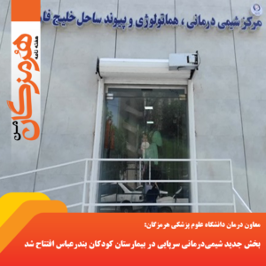 همچنین این بخش توسط دانشگاه علوم پزشکی هرمزگان تجهیز شده است».