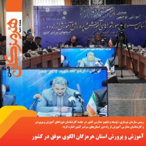قابل ذکر است این جلسه با حضور احمد محمودزاده معاون وزیر و رئیس سازمان مدارس و مراکز غیر دولتی و توسعه مشارکتهای مردمی، و حمید رضا خان محمدی رئیس نوسازی مدارس کشور و کارشناسان کلیه استانهای کشور در حال برگزاری است.