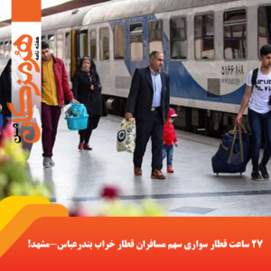 به گزارش هرمزگان، از قطار مسافربری بندرعباس مشهد که روز گذشته ساعت ۱۵:۵۵، بندرعباس را به مقصد مشهد ترک کرده بود و در راه حوالی ساعت ۱۷:۴۰ خراب شد، خبر می رسد که پس از ۲۷ ساعت به مقصد رسید.