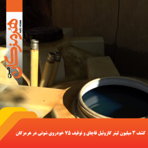 وی یادآور شد: در اجرای این طرح که با همکاری میدانی یگان امداد و پاسگاههای ایست و بازرسی و محوریت پلیس امنیت اقتصادی هرمزگان اجرا شد با انجام گشت زنیهای هدفمند در جادههای فرعی و اصلی و مناطق روستایی استان در مجموع تعداد ۷۵ دستگاه انواع خودروهای شوتی سبک و سنگین که در امر قاچاق سوخت فعالیت داشتند، توقیف و در بازرسی از این خودروهای توقیفی مقدار سه میلیون و ۸۶ هزار لیتر گازوئیل قاچاق کشف و ضبط شد.